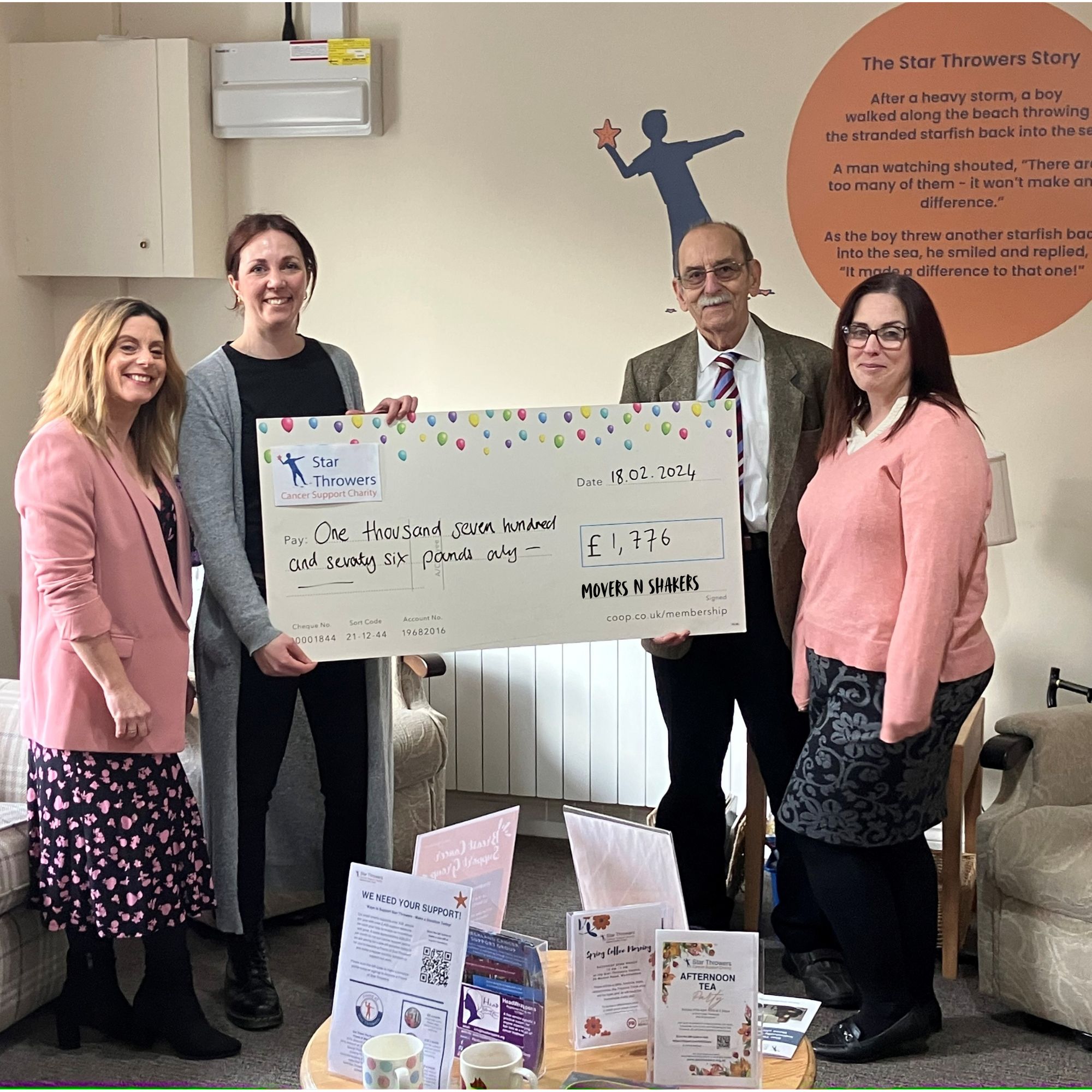 February arrives and mail is flooding in now the rain has stopped. We have just received this thank you presentation from Star Throwers Cancer Support Charity about Christine's memorial evening "Night At The Musicals" previously presented in Connaught Hall on 19th October 2024 and here Vicky, Sam and I receiving it from Victoria on 18th in their Melton Road premises in Wymondham